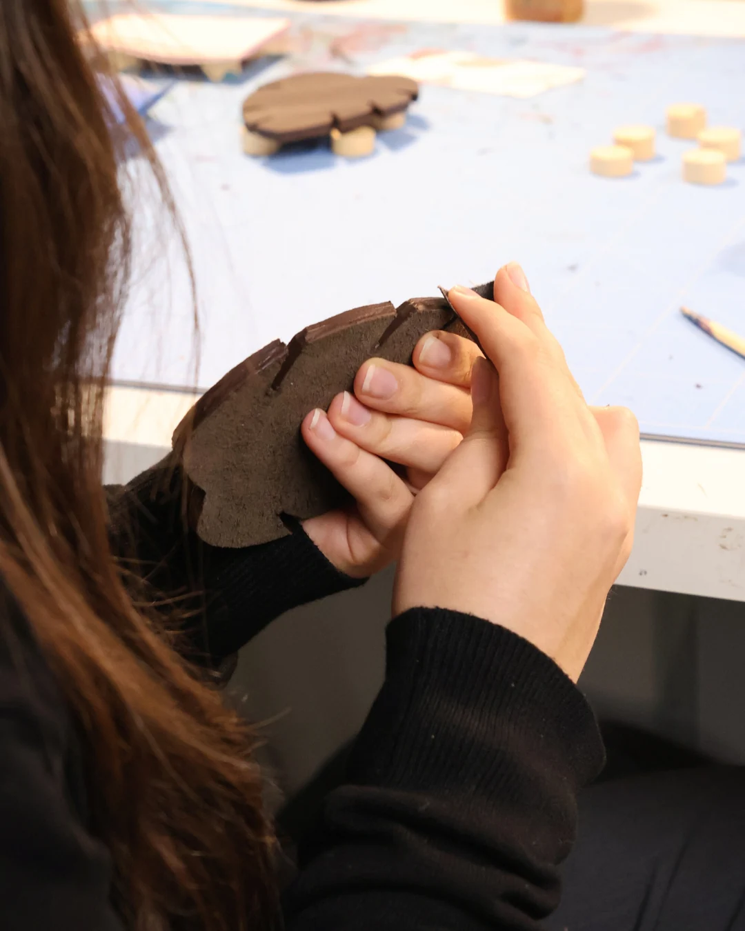 Son immersion auprès de Juliette Wolff lui a permis de découvrir le travail du cuir, d’explorer de nouvelles techniques et d’adopter une approche plus artisanale et concrète du design.